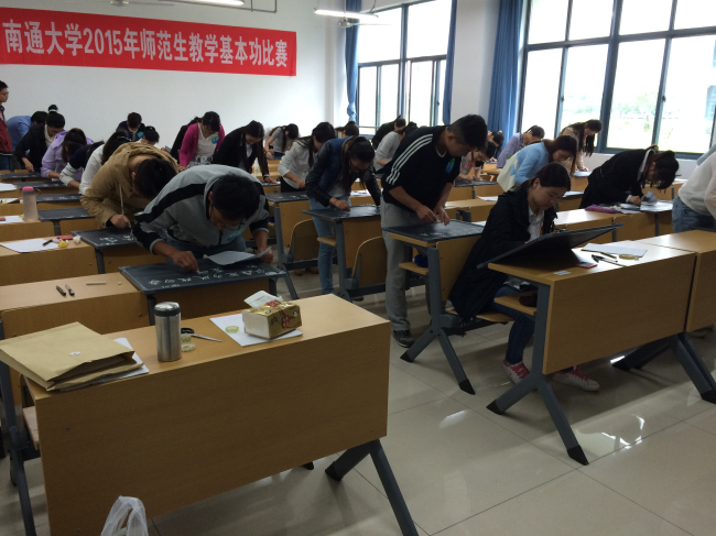 此次比赛严格按照江苏省师范生教学基本功比赛办法执行,比赛分为理科组和文科组两组进行,比赛项目包括基础知识与应用、书写(包括粉笔字和钢笔字)、即兴演讲和说课。通过比赛,参赛选手在比赛过程中充分展现了其各个方面的风采,获得了专家评委的认可和肯定!