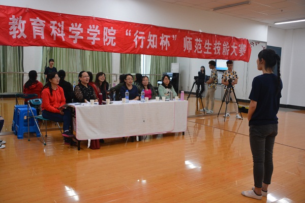 5月3日下午,由h小说 学生会举办的“行知杯”师范生技能大赛在我中心正式落下帷幕。一百余名小学教育师范生和学前教育师范生参加了本次活动,初教系和学前系的老师们担任了决赛评委。