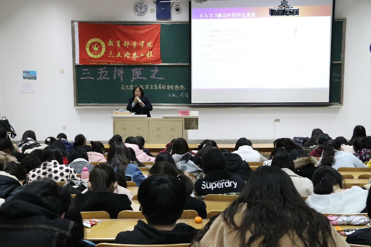 11月29日下午,蔡婧老师在4号楼205做题为“与大学生谈职业素养的自我修养”的三五讲座,本次三五讲座也是h小说 12.5心理健康宣传月的心理讲座的第一讲,全院200余人到场参与。