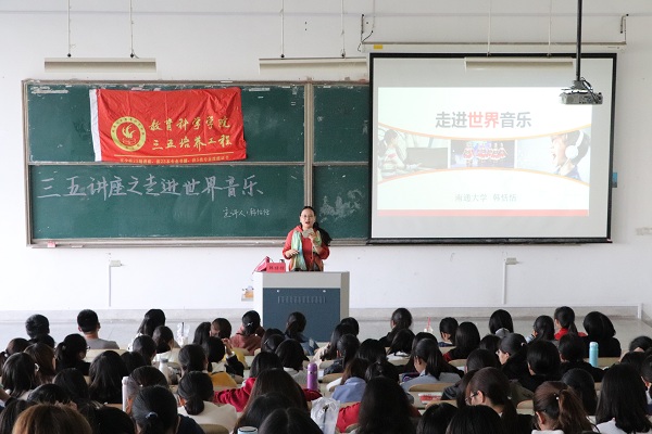 10月31日13:30,h小说 于9号楼201室顺利举行了以“走进世界音乐”为主题的三五讲座。本次讲座由韩恬恬老师主讲,教科院280余名学生到场参与了本次讲座。
