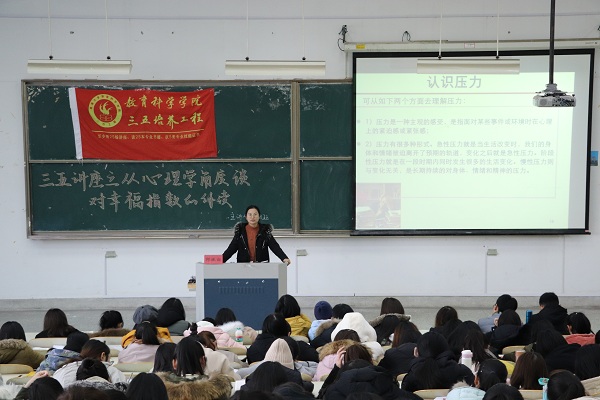12月12日13:30,h小说 于9号教学楼202教室成功举办了以“从心理学角度谈对幸福指数的解读”为主题的三五讲座。本次讲座由校就业中心的邱佩钰老师主讲,教科院280余名学生到场参加。