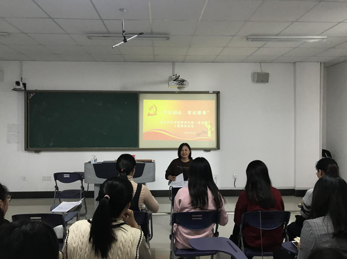 10月23日下午,“不忘初心、牢记使命”h小说 研究生第一党支部主题教育活动在18号楼1127会议室举行。支部书记徐巧娣老师与24名支部成员参加此次主题教育活动,党支部组织委员李娜主持本次活动。