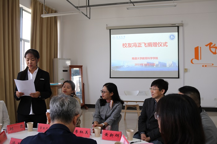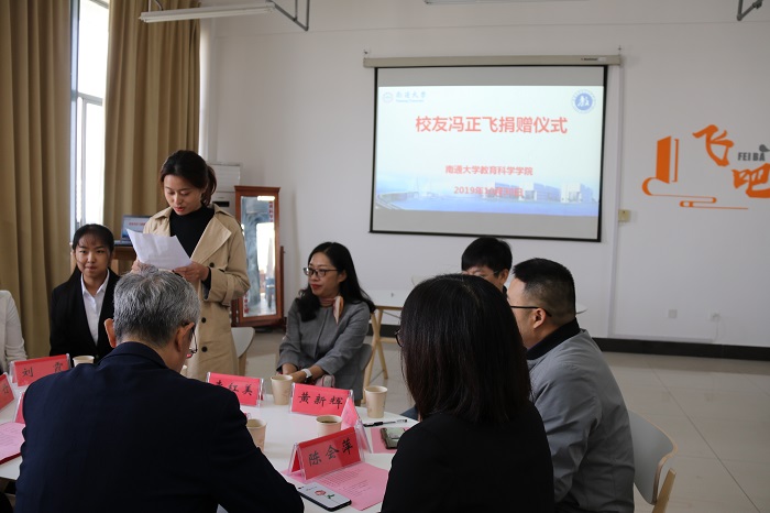 朱丹介绍了校友冯正飞的基本情况,代表学院对他一直以来关心与支持学院发展表示感谢。她指出,捐赠书吧体现了冯正飞对母校的一片热心与赤诚关爱,期望双方今后围绕学生就业创业工作进一步加强交流与合作。