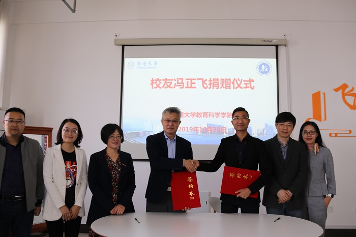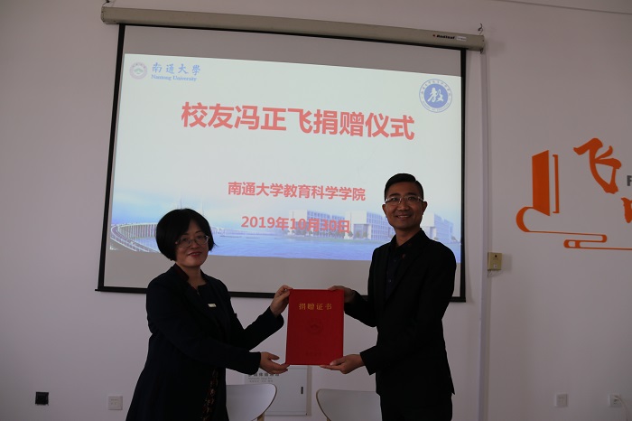 10月30日上午,学院举行校友冯正飞书吧捐赠仪式,学校社会资源处处长岳泳代表学校与冯正飞签订捐赠协议,学院党委书记朱丹为冯正飞颁发捐赠证书。