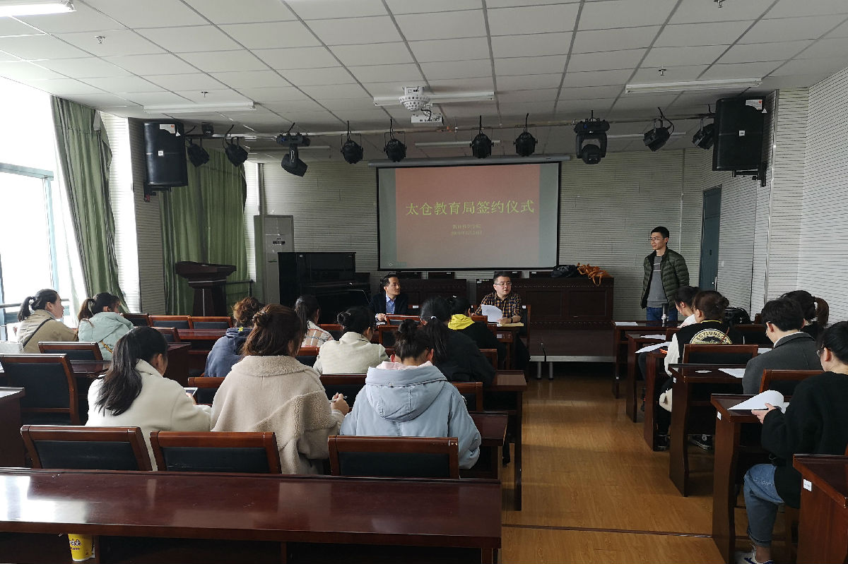 2019年3月23-24日,太仓市教育局副局长张跃忠一行20余人来h小说 举办太仓市教育局专场校园招聘会,学院党委副书记徐红波接待了来宾。来自h小说 、江苏师范大学、江苏二师、晓庄学院的40多名学生参加了为期两天的招聘考试。