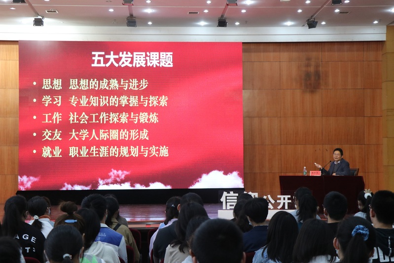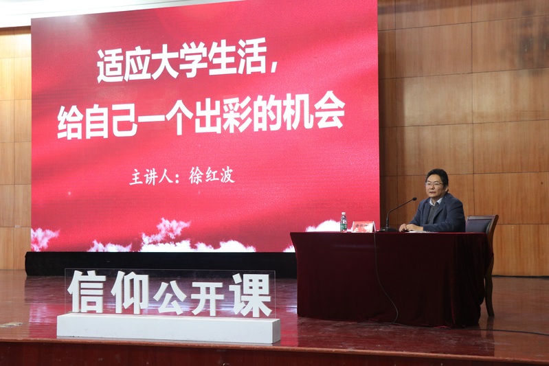 10月21日上午,h小说 于大学生活动中心举办了以“适应大学生活,给自己一个出彩的机会”为主题的信仰公开课。公开课由h小说 党委副书记兼副院长徐红波主持,h小说 2021级研究生及本科生参加了此次公开课。
