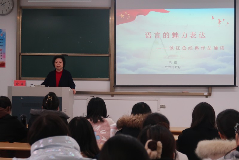 12月8日下午,国家级普通话测试员、南通市朗诵学会副会长、南通市教育局副调研员余宙应邀为h小说 h小说 师生做了题为“语言的魅力表达——谈红色经典作品诵读”的专题讲座,70余名小学教育、学前教育专业学生参加了本次讲座。