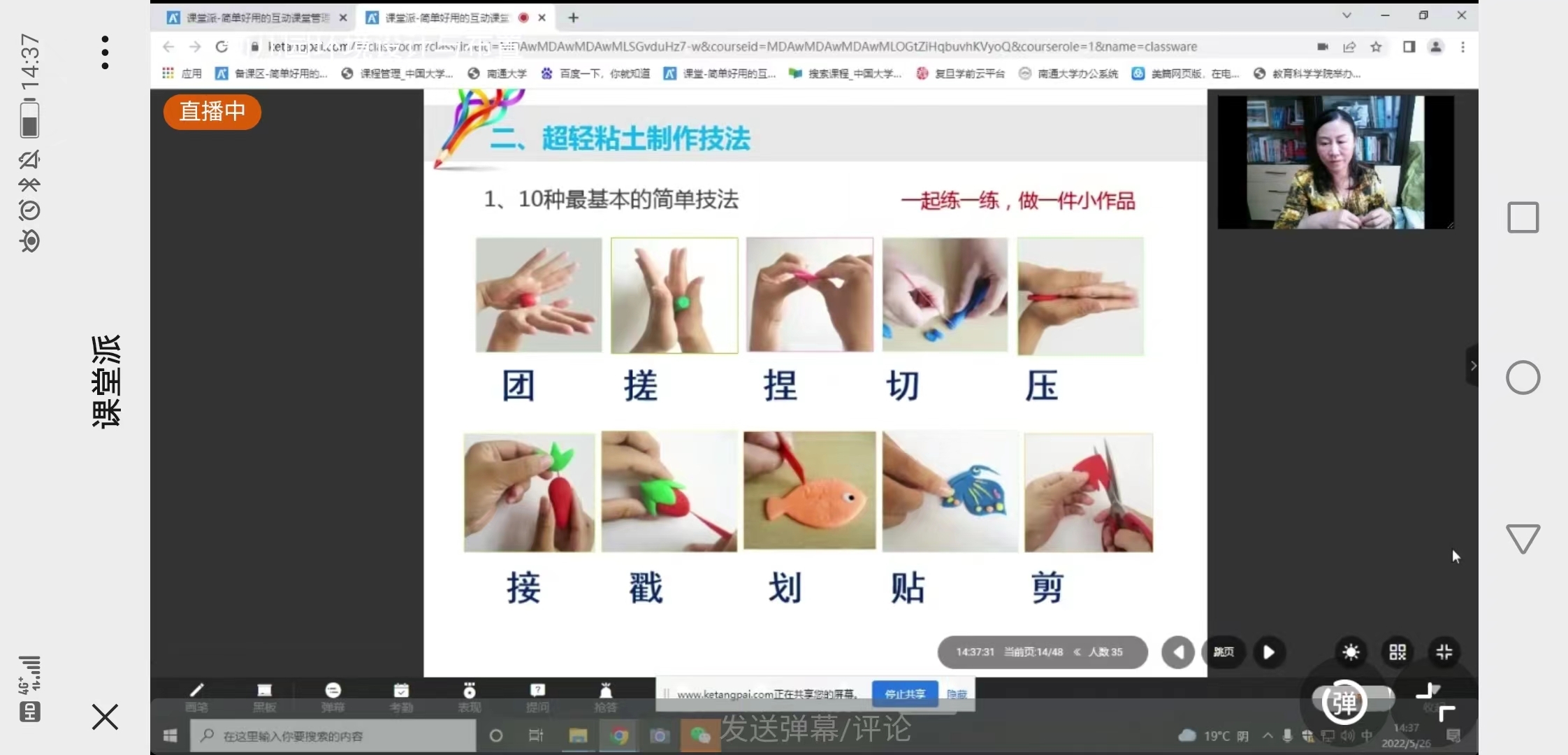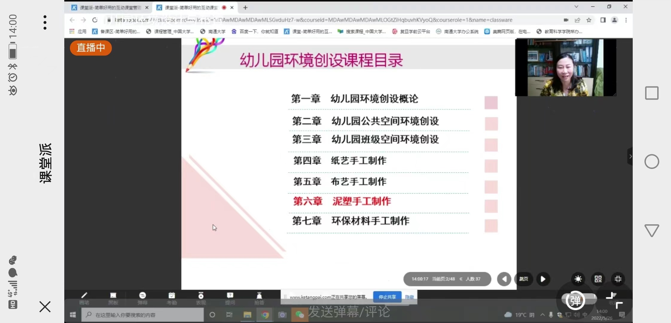 2022526日下午,h小说 学前教育系袁洪群老师在课堂派讲授了《幼儿园环境设计与布置》中的《泥塑手工制作,学前师范191全体学生准时参课,学前教育系吉兆麟主任及院系多名教师线上观摩了此课程。