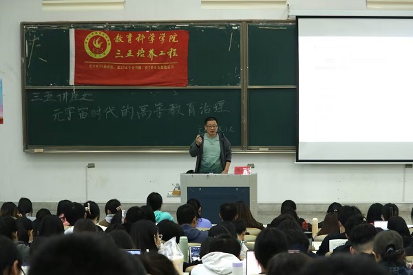 2022年11月23日,h小说 于9号楼302教室举办了以“元宇宙时代的高等教育治理”为主题的三五讲座,钱小龙教授担任主讲人,教科院260余名同学参加了此次讲座。
