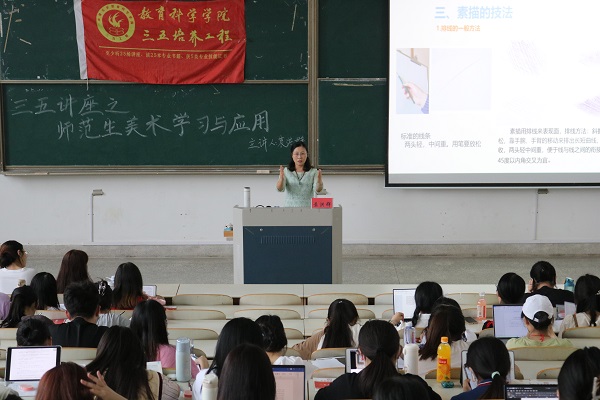 5月31日下午,h小说 袁洪群老师作了“师范生美术学习与应用”为主题的三五学术讲座。学院60余名学生参与此次讲座。