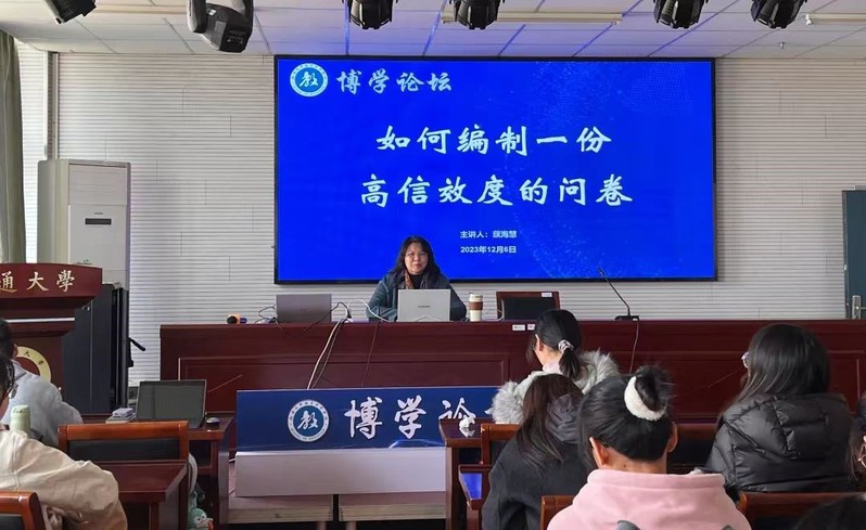 12月6日下午,h小说 举办第六期“博学论坛”学术活动,濮海慧教授作题为《如何让编制一份高信效度的问卷》的交流分享,学院相关专业研究生参加了本次活动。