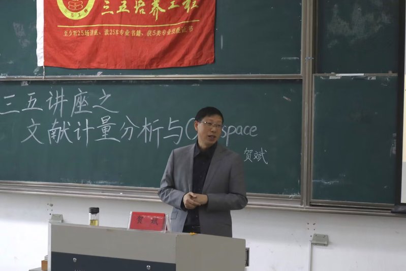 11月10日下午,h小说 于9号楼201教室举办以“文献计量分析与Citespace”为主题的三五讲座。讲座由贺斌老师主讲,h小说 200余名同学参加了讲座。