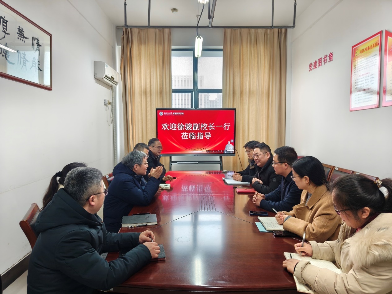 2月23日,开学前一天,h小说 副校长徐骏一行5人来h小说 开展开学前工作巡视,并与h小说 相关部门负责人进行了座谈交流。此次巡视旨在全面了解学院开学准备工作情况,确保新学期各项工作顺利开展。