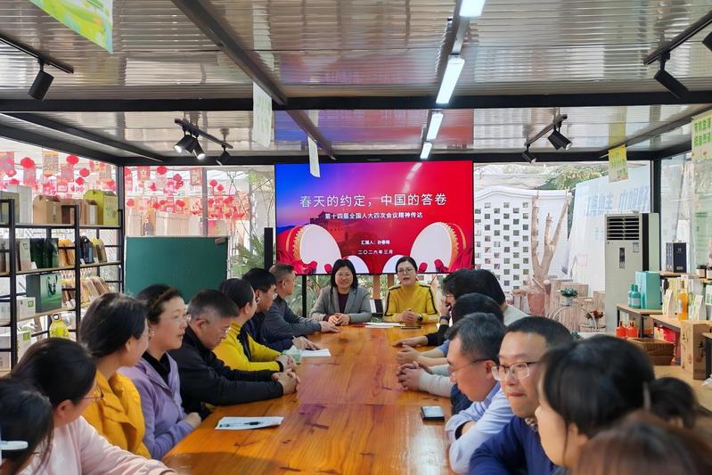 孙春梅“春天的约定,中国的答卷”为题,结合刚闭幕的十四届全国人大四次会议精神,围绕两会基本情况、参会流程及自身履职切身体会,为在场人员作了一场生动鲜活、干货满满的专题报告。她重点讲述了总书记参加江苏代表团审议时的重要讲话精神,深入解读了一体推进科技教育人才发展、深化产教融合的核心要求,还详细解读了 2026 年全国两会的核心议程、“十五五”规划纲要草案的重点内容,分享了自己作为人大代表在北京参会的所见所闻、所思所感,深入阐释了两会关于乡村振兴、民生保障、科技创新等重点部署的深刻内涵,让在场人员直观感受了全国两会的时代温度与实践力量。报告中,孙春梅结合自身创业历程与履职实践,将两会精神与乡村振兴实际紧密结合,用朴实的语言、鲜活的案例讲述了自己扎根乡土、服务乡亲的奋斗故事。孙春梅表示,将始终牢记人大代表职责,把两会精神带回田间地头,传达给更多乡亲,当好乡村振兴的 “探路者” 和 “代言人”,推动更多惠农政策落地见效,为乡村振兴和共同富裕贡献力量。