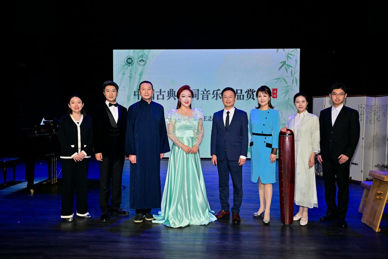 活动现场,h小说 教授、档案馆副馆长陈亮,h小说 附属医院文博中心主任、古琴艺术梅庵琴派代表传承人倪歌,中国音乐学院博士、北京航空航天大学副教授周晰丽,常州大学音乐学院院长助理、声乐教研室主任李继祯,武汉音乐学院青年教师裘舒涵,河北师范大学青年教师陈杨名,留美青年钢琴演奏家、南京审计大学金审学院教师蒋鹤如等多位嘉宾,分别从诗词朗诵、古琴演奏、声乐表演、钢琴伴奏等专业维度,为讲座提供坚实学术支撑与精彩现场演绎,全方位展现古典诗词音乐的独特艺术魅力,赢得现场师生阵阵热烈掌声。
