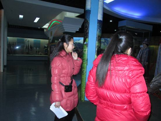 2012年2月1日至4日,h小说 学前121-王月在塔城地区红楼博物馆进行了为期四天的以“喜迎党的十八大,缤纷假日青春行”为主题的实习体验活动,为到馆的每位参观者进行义务讲解。
