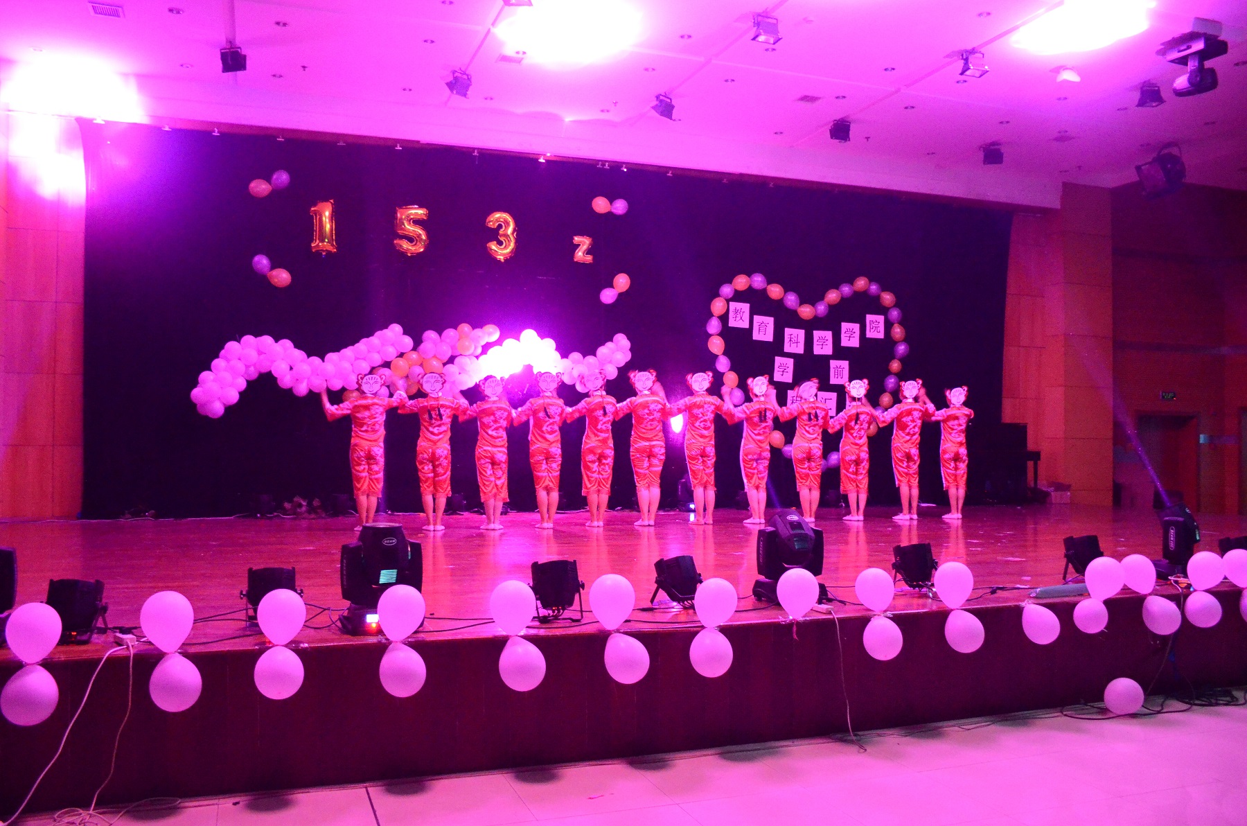 2016年6月6日晚6点06分,h小说 首届5+2专转本班级,学前师范153Z班专场课程汇报在大学生活动中心圆满落下帷幕。教科院副院长许铁梅、书记陈炜、主任吉兆麟、班主任王丽莉等领导老师和二百余名观众观看了本次演出。