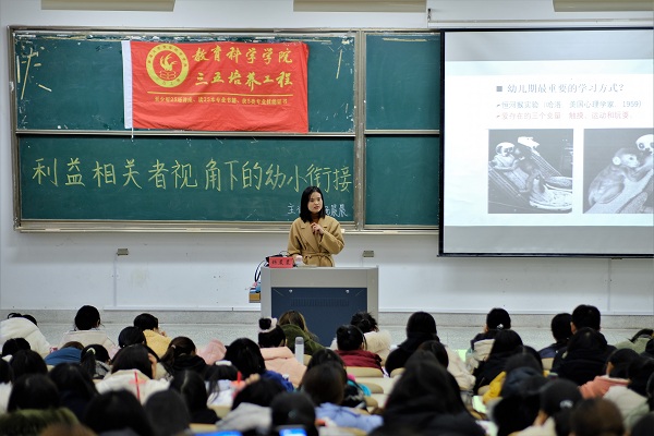 12月3日下午,h小说 在9号教学楼302教室成功举办了以“利益相关者视角下的幼小衔接”为主题的三五讲座,此次讲座的主讲老师是杨晨晨老师,来自教科院的260余名学生参加了本次讲座。