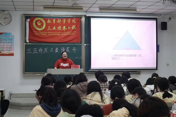 2022年11月8日,在教学楼7号楼201举办了三五讲座之爱情花开。讲座由杨岚岚老师主讲,h小说 2022级应用心理专业所有学生参加。杨岚岚老师带领同学们深入了解爱情,引导同学们逐渐树立正确的爱情观。她通过不同年代的爱情的样子引出了讲座的主题,从爱情的实质、谈恋爱的好处、恋爱的动机、大学生恋爱现象、性态度的角度对爱情进行解析。