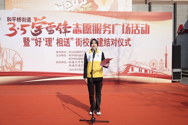3月4日上午,h小说 本科生党支部联合南通市崇川区和平桥街道在濠西书院广场共同开展三月学雷锋志愿活动。
