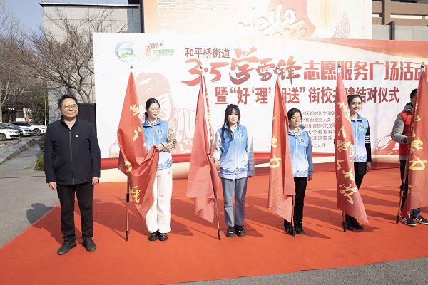 启动仪式上,h小说 党委书记朱丹与崇川区和平桥街道党工委书记陆志明共同为“红色青春驿站大学生志愿服务基地”揭牌,朱丹勉励大学生党员努力传承红色基因,以实际行动为社区做好志愿服务,发挥青春活力和聪明才智,提升党性修为,让党的光辉闪耀每个角落。李宏健表示要不断加强“校街”合作交流,实现平台优质资源共建共享。随后,双方共同为承接四大志愿服务项目的学生代表授旗。h小说 教科院学生党员代表郝子怡作为大学生代表发言,她号召广大青年党员脚踏实地,在学、知、用、行等方面做好理论宣讲的传播者、志愿服务的实践者、雷锋精神的践行者。仪式最后,大家齐声合唱《学习雷锋好榜样》,志愿服务活动拉开帷幕。